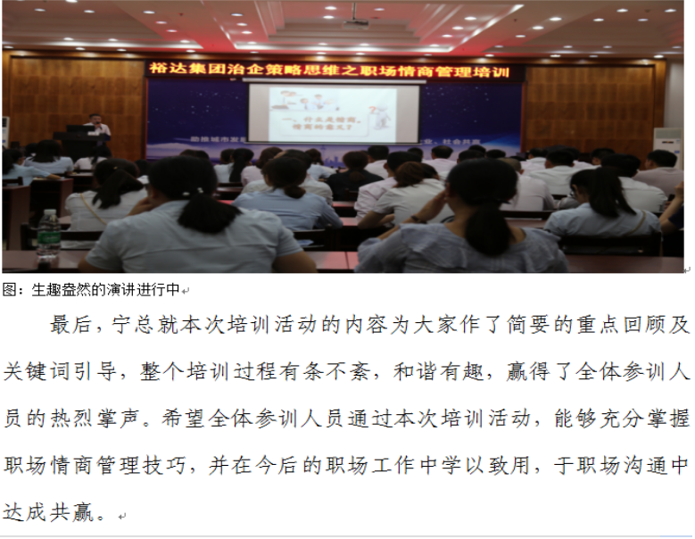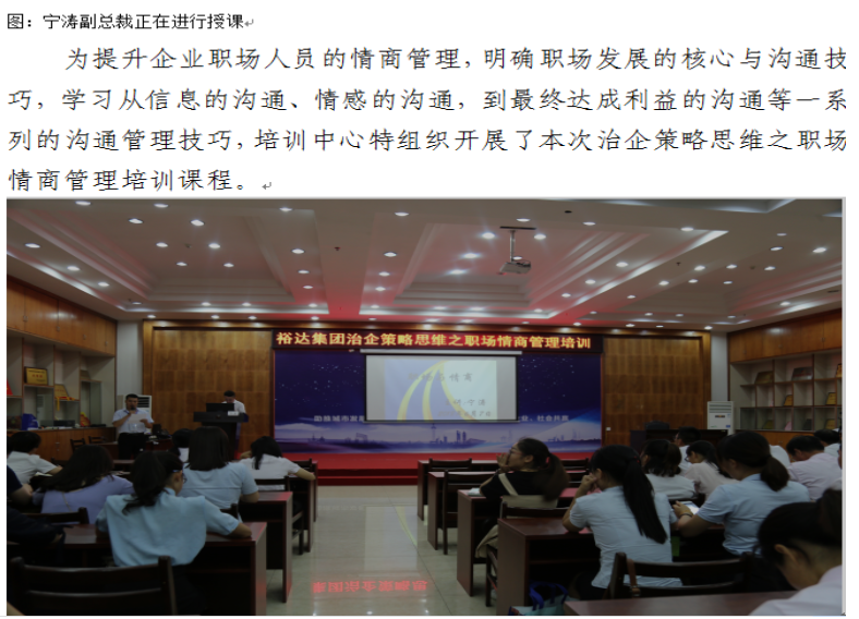 裕达集团治企策略思维之职场情商管理培训成功开展