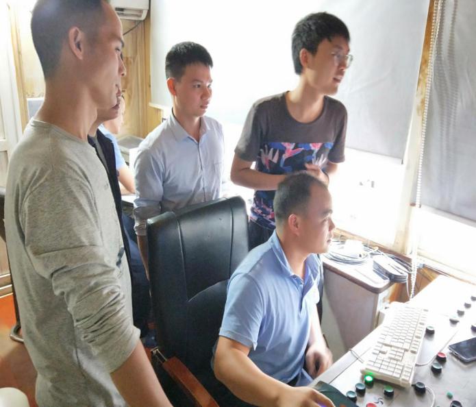 (图1:来宾站管理人员现场观摩柳州军泰搅拌站的ERP管理系统)