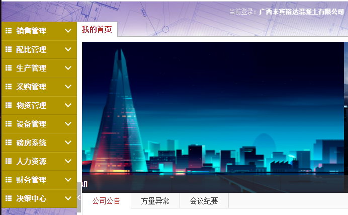在上线试运行的这段时间里,我司改变了旧有的工作模式,建立起横向跨部门的工作流程,明确了各岗位的责任、权利、义务,做到了有操作、有授权、有控制。另一方面,增强了部门之间联动配合,数据授权共享。目前各部门已使用共同的数据库,混凝土生产任务安排、原材料进场过磅等业务单据一次录入,减少了中间环节的人工干预与重复劳动。