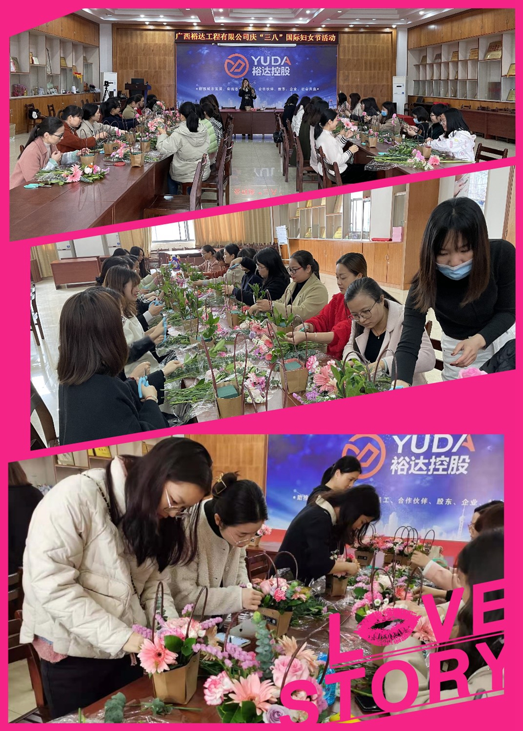 三月春晖,百花争艳。3月6日,公司组织全体女职工在来宾总部7楼大会议室举办插花品香、欢乐套圈等活动,喜迎“三八”妇女节。