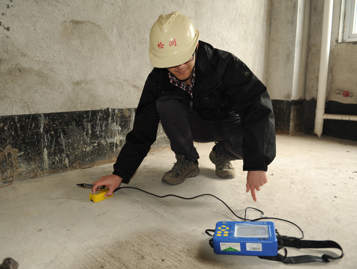 检测人员在检测住宅工程混凝土抗压强度。资料图片