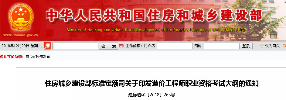 近日,住房和城乡建设部官网正式发布2019年《全国一、二级造价工程师职业资格考试大纲》,自2019年1月1日起施行!