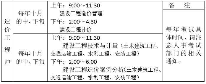 一级造价工程师年度考试时间安排