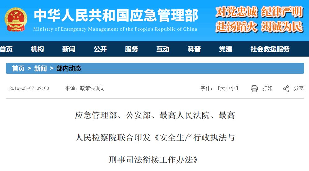 安全生产 ▏应急管理部、公安部、最高人民法院、最高人民检察院四部门出台《安全生产行政执法与刑事司法衔接工作办法》!