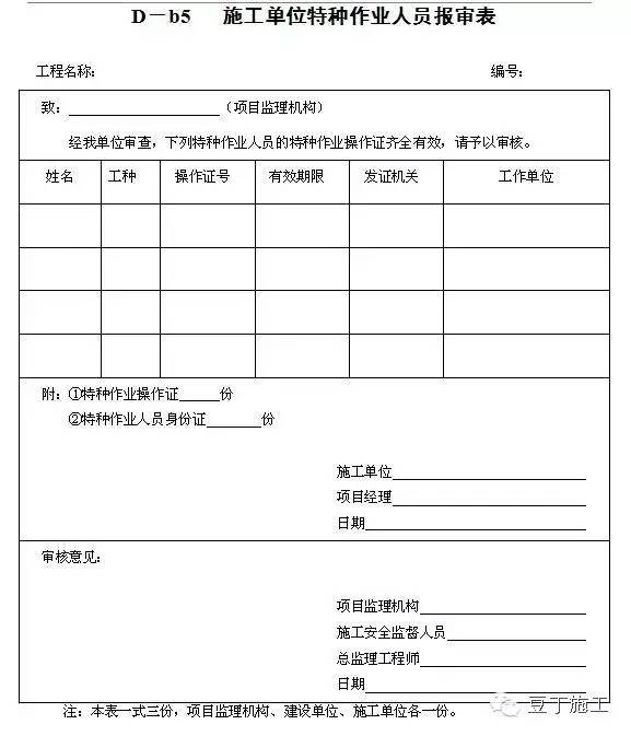 有特殊作业人员,需向项目部上报其工程相应的合格有效的特殊工程作业人员操作证复印件(如:电工、电气焊工、架子工、起重司索工、起重司机、起重机械安拆工、吊篮安拆工、场内机动车驾驶员、桩工等)。