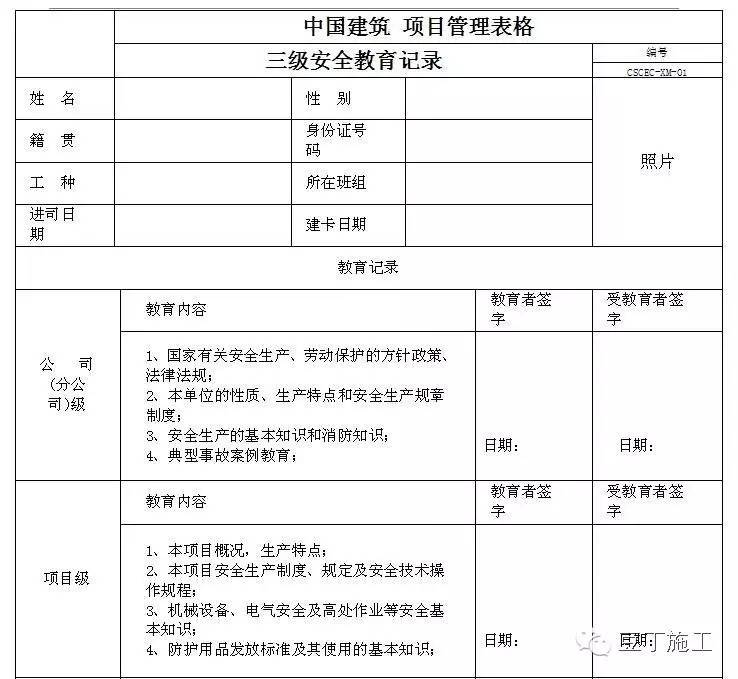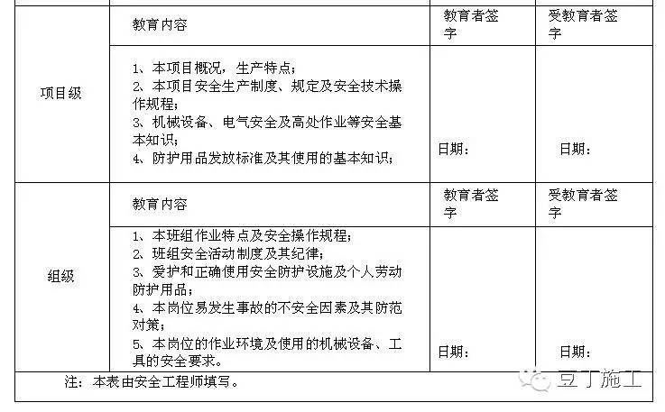 6、执行入场教育、现场教育、岗位教育等三级教育。