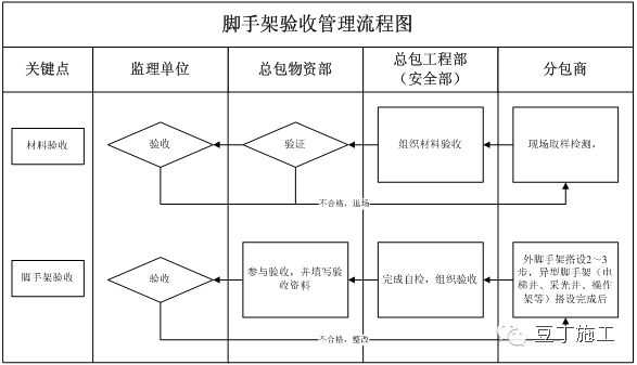 3、整体落地式脚手架,每搭设2~3步,由项目部组织有关人员,验收合格后,方能挂牌使用。