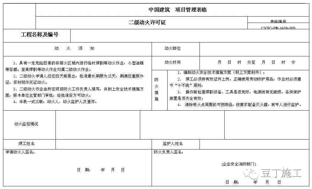 3)三级动火作业由所在班组填写,经本单位项目部施工负责人审查批准,方可动火。