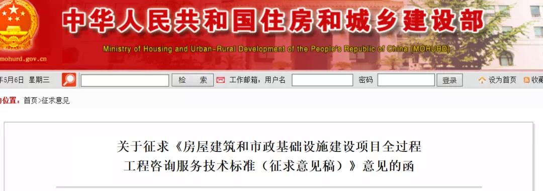 2020年4月27日,住建部发布关于征求《房屋建筑和市政基础设施建设项目全过程工程咨询服务技术标准(征求意见稿)》意见的函。