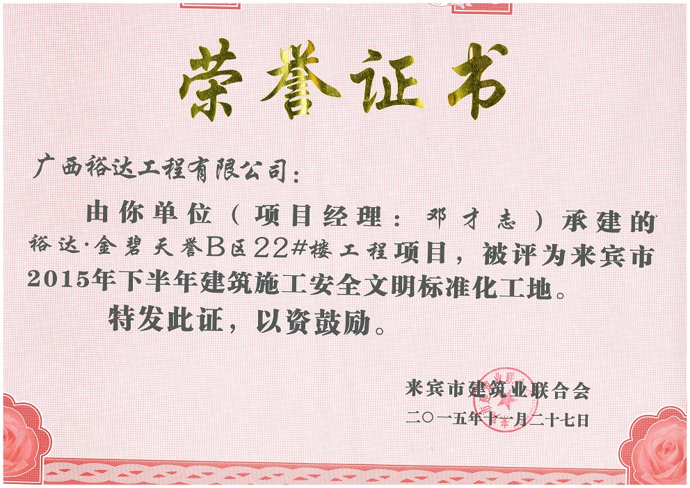 2015年下半年建筑施工安全文明标准化工地(金碧天誉B区22#楼)