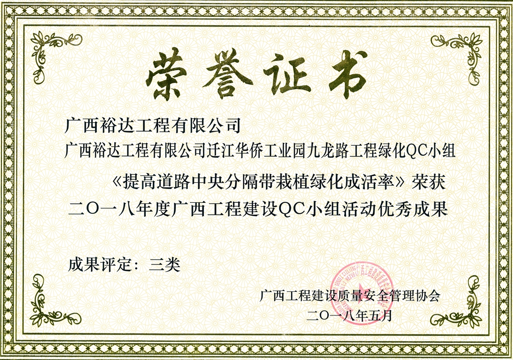 2018年度广西工程建设QC小组活动优秀成果