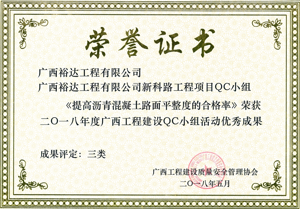2018年度广西工程建设QC小组活动优秀成果