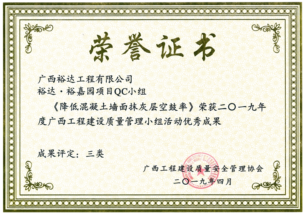 2019年度广西工程建设质量管理小组活动优秀成果