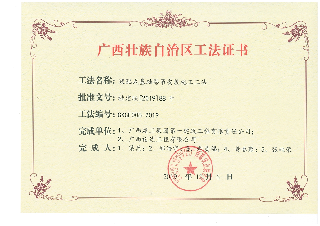 装配式基础塔吊安装施工工法(广西建工一建)